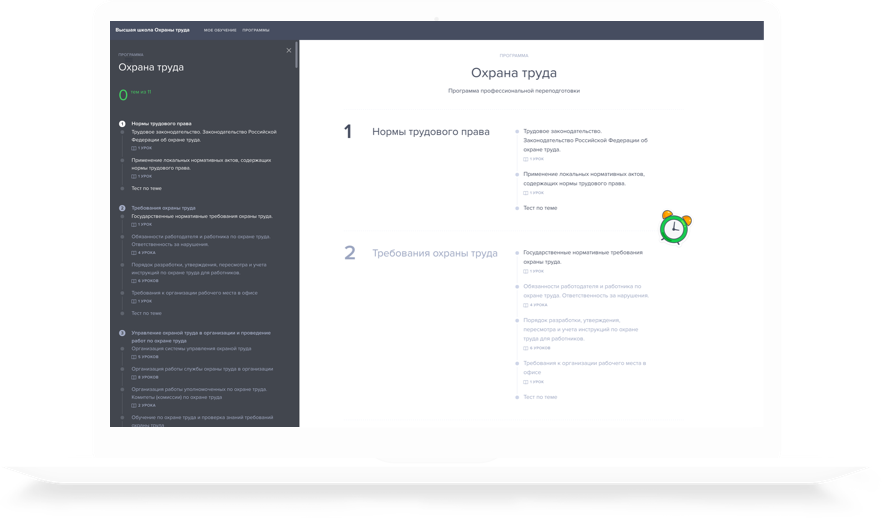 - Гибкий график обучения Обучайтесь в удобное время — доступ к личному кабинету в Высшей школы Охраны труда открыт 24 часа в сутки