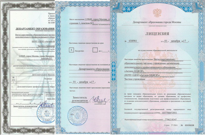 выдана Департаментом образованияАттестационная программа, после которой получите Аттестат и Удостоверение